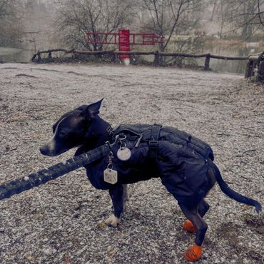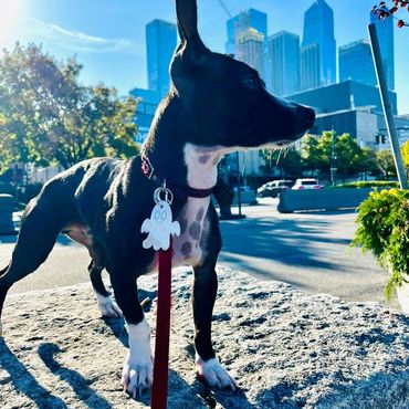 Here is Mr. Kitsch enjoying his energetic Central Park walk with a Ghost reflector.